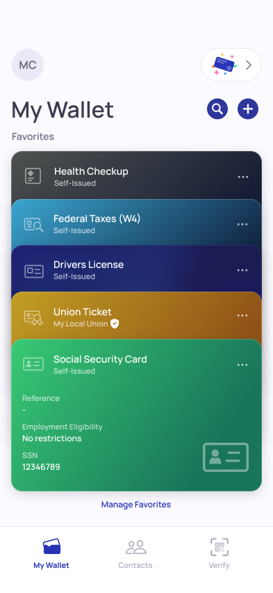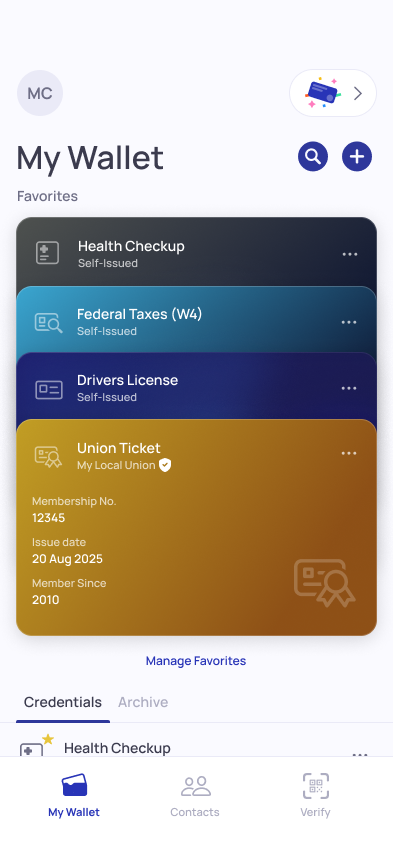 You can add your own credentials to your wallet so they are securely stored in JNCTN and ready to share: