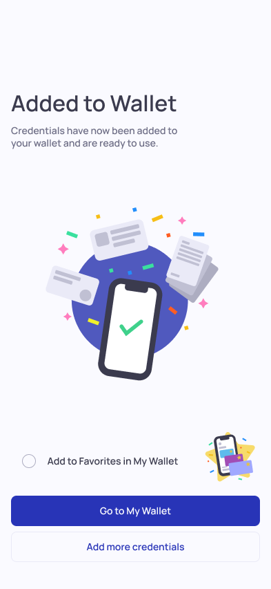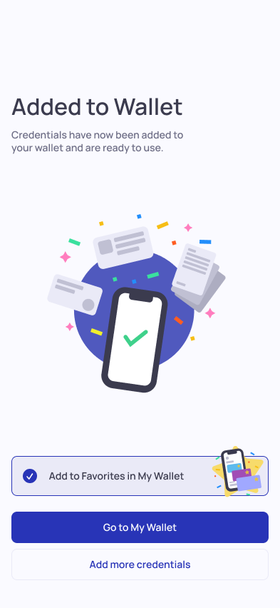3. The credentials will be added to your wallet and you are given the option to add them as Favorites cards in your wallet.