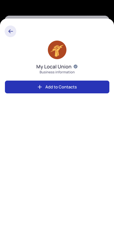 4. Locate your desired Organization, and add it to your contacts by tapping “Add to Contacts”.